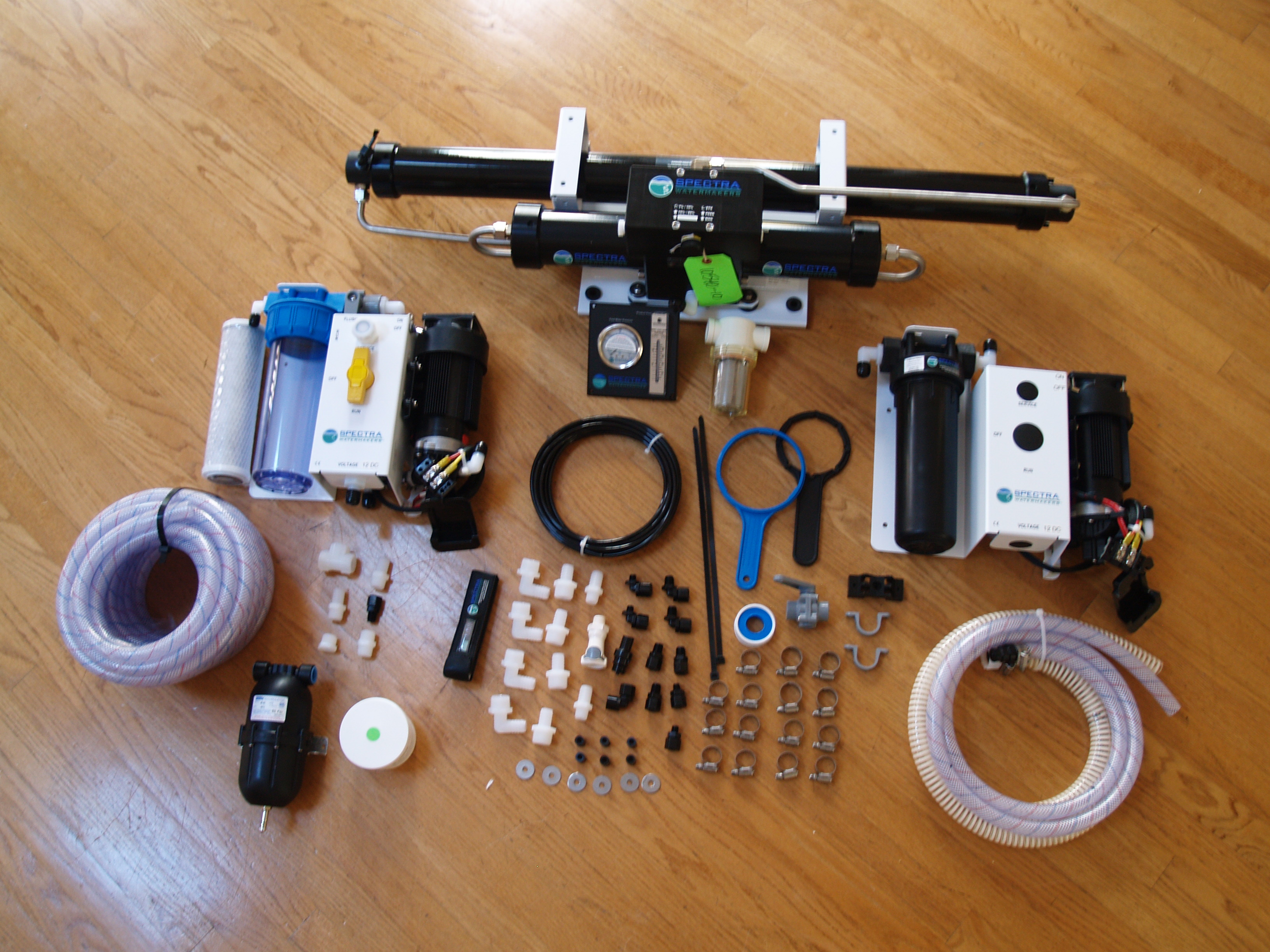 A great solution to the water supply problem is to install an RO unit, and that’s what we’ve decided to do. As I noted in a past post, we chose a Spectra unit and I will begin installing it in the next few weeks. Setting aside cost, this is one complex unit. Besides the obvious technology that makes the system work, there are a LOT OF PARTS. This sucker is complicated. The instructions that came with it urged me to do a complete inventory upon delivery. Here you go, a complete inventory…