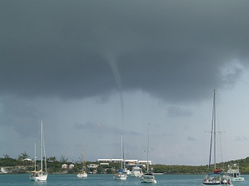 Into every life a little rain must fall but in the Bahamas the emphasis is on the “little” as there is way more sun than rain.  However, yesterday was a bit out of the ordinary with a waterspout followed by a number of impressive squalls and plenty of heavy if very brief rain.   This impressive scene was gone as quickly as it began. Tomorrow we will be moving a few miles to be closer to some great snorkeling spots.  Happily, the weather is going to be very calm so the heavy winds we have had will be in remission for a few days.  I can’t believe how fast the week is going.     Brenda in particular, is going to be in heavy duty withdrawal when the kids leave.    Me too.