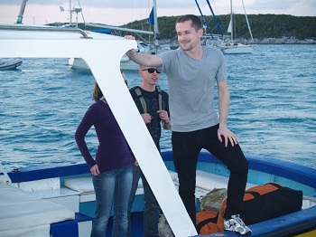 So, on Saturday evening, as the snow was falling in the US, our boys Rob and Chris along with Rob’s girlfriend Kandice arrived for a week aboard.  Believe it or not, they actually arrived an hour early.  How great is that?