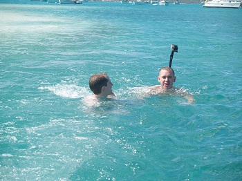 First of all, I have been remiss in doing a post since the gang arrived on Saturday as we have been so busy running around, cooking, lugging fresh water for showers and trying to keep some semblance of order on a boat with five aboard.  It’s funny, but you can actually spend time in a space that’s about the size of a large bathroom with five people and somehow adjust to the limited space.  Having said that,  when everyone is jumping into the water, coming back aboard all salty only to jump in again it does seem like keeping the boat somewhat salt free is a loosing battle.   And, there is plenty of rubble everywhere out in the cockpit and on deck.  I am happy to say that in spite of my anal need for cleanliness, I haven’t been too much of a jerk at all about all of this.  Brenda, I believe, would corroborate this as well.
