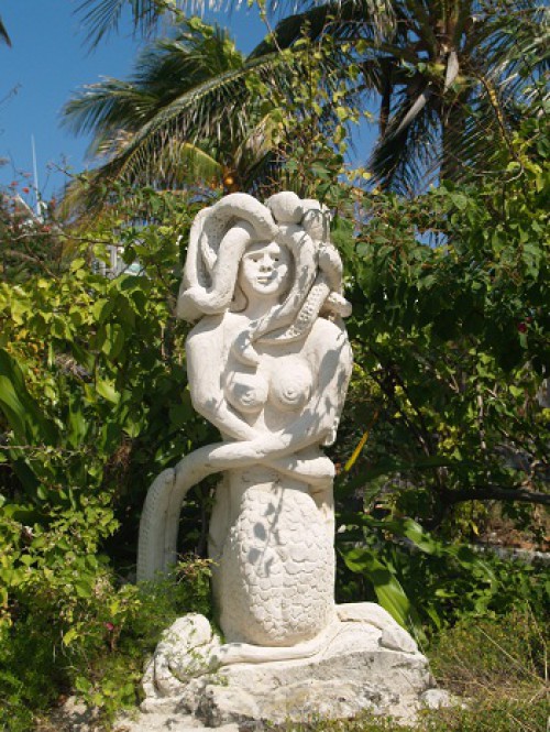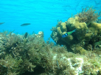 As the marina is not up to snuff you can stay there for free as long as you like and the local “owner” Bobby, will sell you water, ice or a place to take a shower.  He’s also an artist and carves sculptures out of coral and other natural items.There is also a kitchen from the old, now closed, restaurant that is available for cruisers to stage their own potluck meals.  It’s a pretty building with a great view.Someone that we met prior to coming here described this marina as a “jungle marina”, not far from true. There is no staff to speak of and any time you enter the marina the other cruisers help out with lines.  There is usually some wind at the entrance so it’s a bit tricky on the way in.  It’s good to have a few extra sets of helping hands at the ready.  And, along with the hands are plenty of docking “advice”.  Happily, the group is good natured as nearly everyone has a tough time at one point or the other with the docking. As this place is so off of the beaten path, a fishing charter is very good with a seemingly endless supply of lobster and fish to spear on the nearby reefs.   And with fish come sharks who show up each evening in the marina for handouts from the fish cleaning station.
