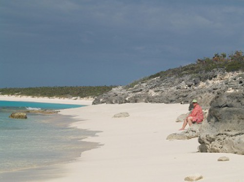 After several weeks in George Town Brenda and I were ready for a fix of “real” Bahamas life.  After leaving George Town we headed over to Calabash Bay, on the northern tip of Long Island.  The spot was very pretty with a great beach.   It was fun to actually sail again after weeks of sitting around and to do so over water that was a deep indigo blue with shallow reefs everywhere.   Piloting around all of this is a challenge.  Thank goodness for great charts.