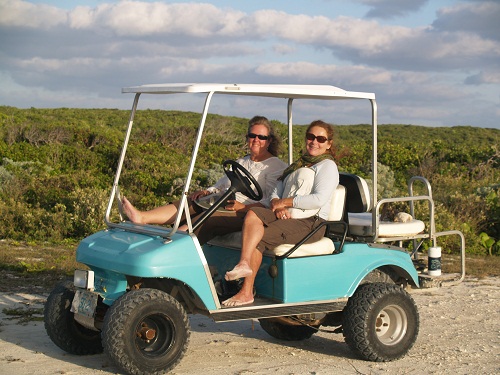 A few days ago Brenda and I rented a golf cart to do some beach exploring along with our friends Dick and Anne.  It was great fun and we enjoyed spending some time on the shore.  The beach went on for miles and there wasn’t a sole to be seen.  Good thing that the golf cart didn’t break down. Things aren’t maintained here at the same high level as in the states, it seems.  As we were motoring down the road we approached a hill only to learn that the cart doesn’t seem to have breaks.   That was a bit breathtaking, I’d say.  No loss of life though.