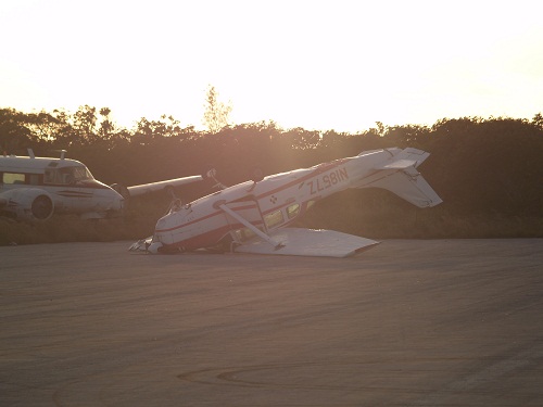 The beach was quite magnificent with large breakers hitting the shore.  Pretty dramatic. Brenda and Anne aboard the “noble steed”.   Pretty big tires for a golf cart.On our way to the beach we passed the airport.  There were a total of four planes in residence.  However, these two don’t look like they are leaving any time soon.   I understand that the one upside down was flipped by Sandy and the other was owned by a drug guy years ago.  It seems that when stuff breaks down her it is just left and never picked up.  Too bad as it does junk up the island and much of it isn’t this interesting.  Yesterday I spent some time spearfishing and bagged one small fish but not enough to make a meal out of.  I should have spent more time with my camera as I spied a fabulous spotted ray that swam gracefully by and a small turtle.  The water was really amazingly clear.  I expect that the visibility was well in excess of 100’.