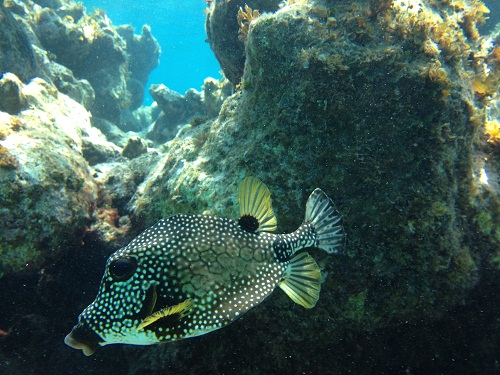 This little guy, a cow fish,  is one of my favorites.Angel fish are great too and come in a variety of colors.