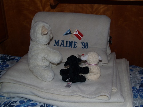 I am  beginning to think about plans for next summer which will probably include a visit to Maine again, our 16th visit.  Pandora’s sheep mascots have been thinking about it too it seems.   Hmm…Oh yea, I should note that Brenda’s doing great with her basket making and has now finished three, each better than the last.  Some photos to come soon.