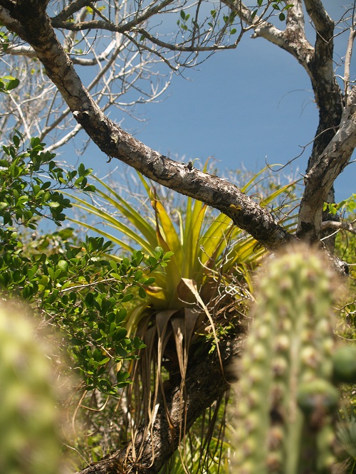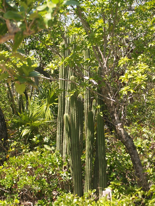 The vegetation in the Abacos, while still pretty desert like, was much more lush than in the Exumas and areas south of there.   I expect that it’s greener here as there are so many more cold fronts with squalls and rain showers hitting this area in the winter than further south.  These cacti were pretty impressive specimens. Bromeliads (related to pineapple but grow on other plants and not in the ground) are fairly abundant too and quite large.  This one was about 2’ tall.   We also saw some native orchids,  but none were in bloom.  I think that they were encyclia.On our way back to the harbor we passed this very nicely painted home.  It seems that bright colors carry the day here.   Colorful buildings are the norm here.  Even the government offices are brightly painted, usually pink.   I like it.So, after two days in Little Harbor we made our way out of the channel, which is only three feet deep at low tide, and sailed north to Marsh Harbor.  The run was about 15 miles and quite circuitous given the many sandbars and shallow shoals that we had to go around to make the run.  I was very glad to have a self tending jib so that jibing around each way point and shoal was less of a production.  By the time we made it to within sight of Marsh Harbor the wind had piped up to over 20kts ahead of a squall which made for a spirited sail.