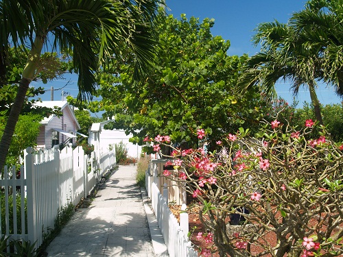 This is a good example of one of the “streets” that run all around the island. Golf carts are the preferred form of transportation. The plantings are lovingly maintained.