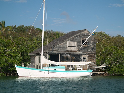Last night we went on a “cocktail cruise” in our dink and enjoyed the sights of the waterfront and harbor. This little wooden boat caught our eye. It seemed right at home near the rustic cabin. Not the sort of sight that we have seen much of here in the Bahamas. It looks like someone named Billy-Bob should live in that house.