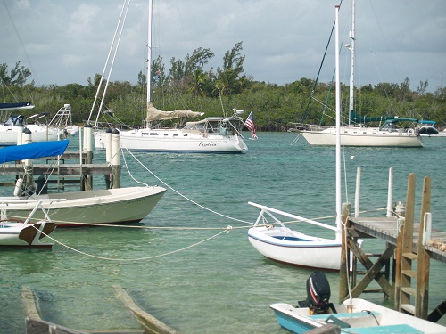 Yesterday, Sunday, we arrived here in Man-O-War Cay after a short five mile motor from Hope Town. The flavor of this island is so different than Hope Town with it’s thriving boat building waterfront. Hope Town is much more of an island resort and this island seems to be all business. In some ways, nix the palms and you’d almost think that you were in Maine. The harbor is very small and well protected and with loads of moorings, some of which are alarmingly close to one another.