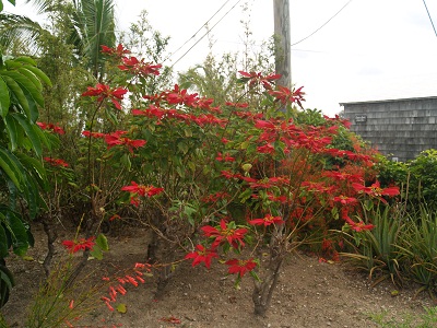 If you guessed poinsettia, you’d be right. I expect this is what they look like if you put them out after New Years and they don’t end up under a snow drift like up north.