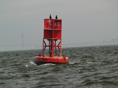 I have sailed the waters of the New York area for many years and it was nice to enter Ambrose Channel and head up into NY Harbor. No, this isn’t the very first bouy in the channel, but it was one of the first markers, of any sort, that I had seen after months of sailing in the Bahamas. Even when there are buoys shown on the charts, they aren’t actually there. To see so many leading us up the harbor I felt like saying “Nice bouy, bouy.” Oh, I guess that means there is a rock nearby. Perhaps we wouldn’t need them here either if the water was clear as in the Bahamas where everything is easy to see. Sort of…