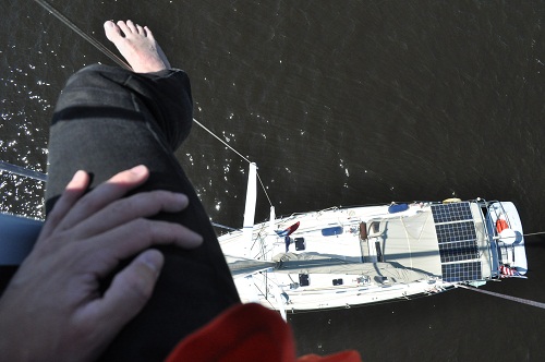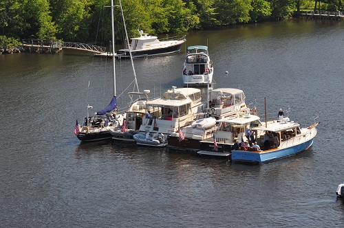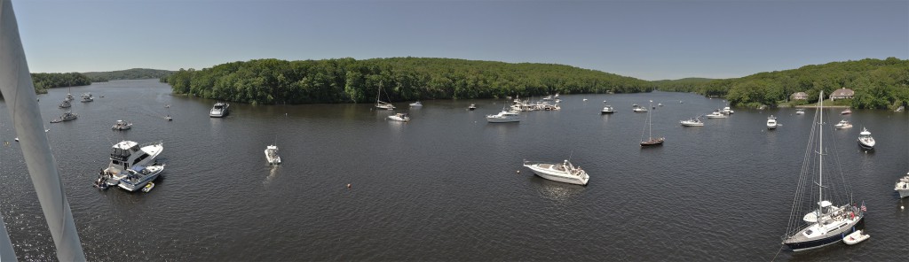 Prior to hauling Pandora we went for a last “sail” a short motorboat ride over to Hamburg Cove, on the CT River for Memorial Day just after my arrival. A number of boats from the Essex Yacht Club rafted up for cocktails. We joined them and had a great time. Our son Christopher took a ride up to the top Pandora’s mast and took some great photos. Mast climbing has been a favorite pastime for Chris for a long time. Now that he’s in his 20s he hasn’t lost interest. It’s a good thing that we have an electric winch now that he’s a lot heavier than when he was eight.