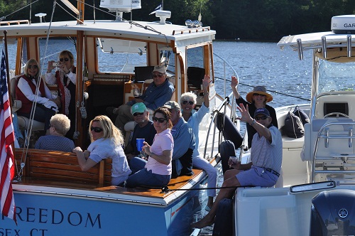 The folks from EYC began to arrive. Pandora wasn’t in the raft up as we needed to leave early and didn’t want to disrupt things. However, a bit away from them, Chris was able to take a photo of some of the boats from the club. Years ago we used to raft up regularly but not any more, or at least not in the areas we have been cruising. It’s easier to just anchor and dink over to another boat. Besides, if we get hit by someone’s wake it can cause boats to crash into each other if they are rafted up. Not a good thing.