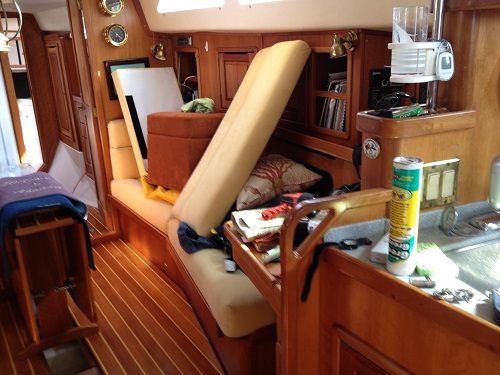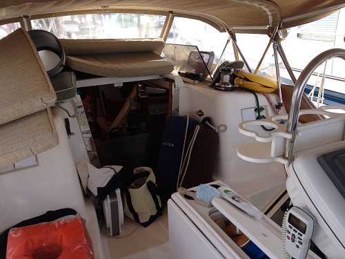 A bit different than when Pandora was in full live-a-board trim. I like this view better. A women’s touch… What women you ask? Just guess. Yes, you got it.