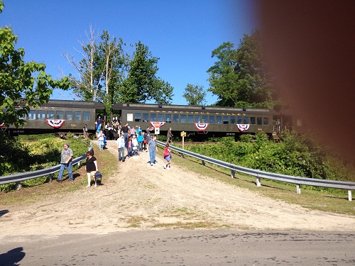 As we arrived in Haddam, everyone got off of the train. They really decked out the train with bunting for the occasion. Forgive the thumb on the pix. My “real” camera is on the fritz. Yes, I could crop out my thumb but this blog is about real photos and really amateur photographers, me. Besides, it’s so much easier to just post it and ask for forgiveness. This is a blog with no shame…