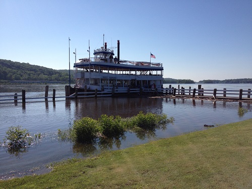 This is the lovely Becky Thatcher that we boarded for the trip back down the river. Along the way we spied the train that was crawling along to keep pace with good old BT.