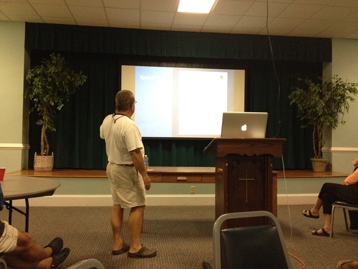 One of the presenters during the day of seminars was Mark Doyle. He and his wife Diana, long time ICW cruisers, have a series of guides that detail their favorite anchorages along the 1,000+ miles on the ICW between Hampton and Florida. The “On The Water ChartGuides” are a must for anyone taking the inside route. As Mark was presenting, I was struck by how different he looked than most of the folks I have seen standing in front of PowerPoint slides over the yeas. In my “old life” the dress code was a bit less casual. Mark and the others, including me, at the seminar were dressed in “T” shirts and shorts which Mark rounded off with Crock sandals. Not your usual corporate meeting presentation wardrobe. I am just so happy to be in the “crock world” now.