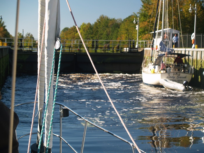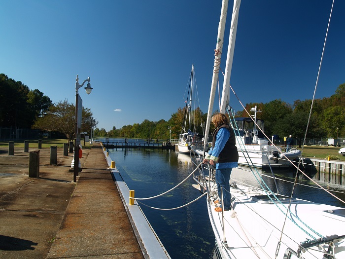 Our trip through the two locks at either end of the canal were uneventful. The very pleasant lock tender Robert, was as helpful as always. We entered the first lock, the Deep Creek lock, to begin our 8′ lift into the canal.