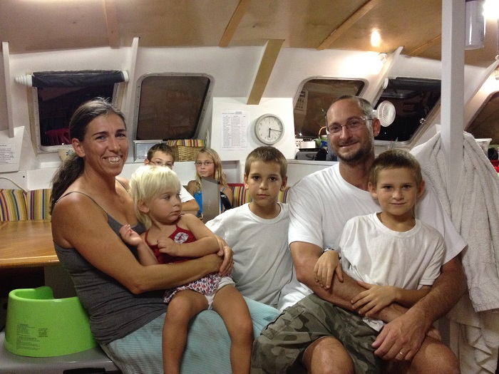 After dinner I asked if perhaps I could get a “family photo” and within a literal moment, all were assembled and ready.   How great is that?  No need for 15 minutes of assembling a reluctant group for a photo, just a simple request and an equally simple answer.  And yes, the first shot was perfect.  What a great looking brood. Imagine living full time on board with five energetic children.  As an added testimony to how things are going, they moved aboard with four and now have five.