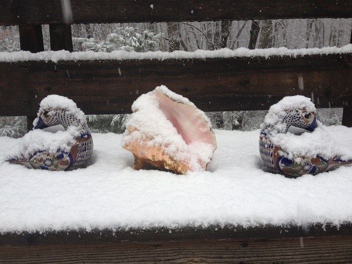 I doubt that there is anything more emblematic of the Bahamas than the conch. This one was looking a bit forlorn yesterday as the snow began to fall. This view makes the islands seem really far away.