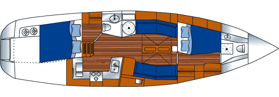 You’d think that just casting off the lines should be easy but it’s amazingly tough. While Pandora is not a big boat, there are an amazing number of details to attend to and places to loose things. Actually, without a detailed list, I expect that things could get lost for years. Pandora is 43’ long and 12’ wide. While that might sound big, believe me, it’s not. This is a schematic of what the boat looks like “down below”. We sleep in the front bunk.