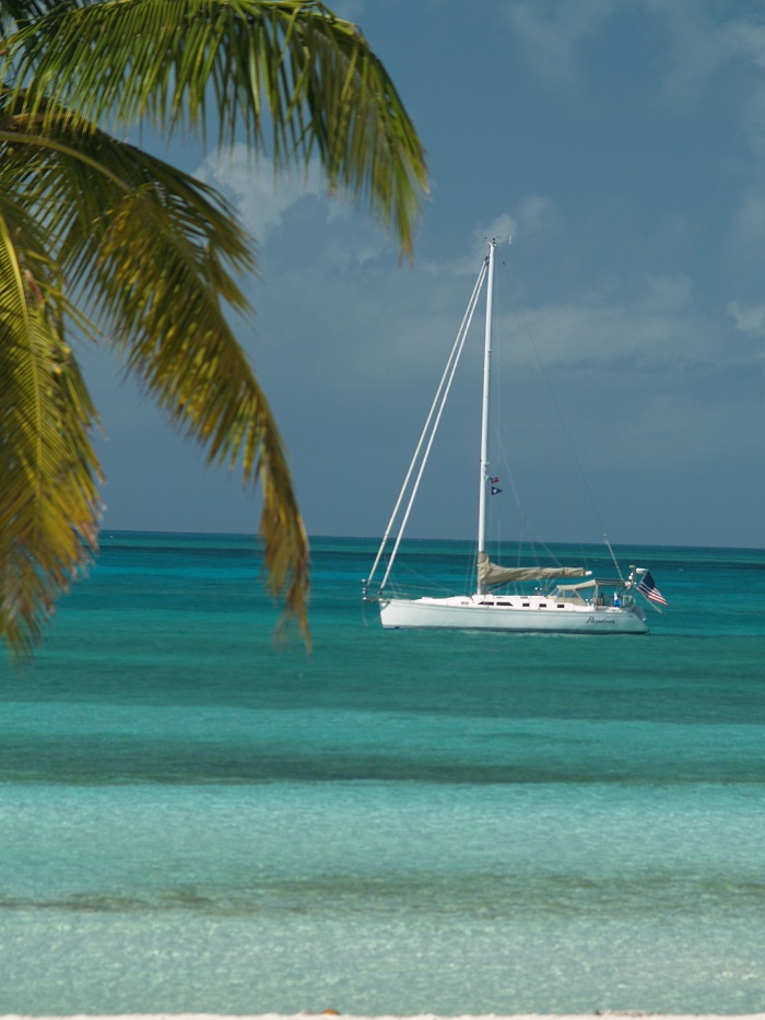 While we were ashore enjoying lunch, I took this photo of Pandora anchored off of the resort beach. What a beautiful spot. We’ll have to come back next year. Perhaps we will spring for a visit to the marina too.