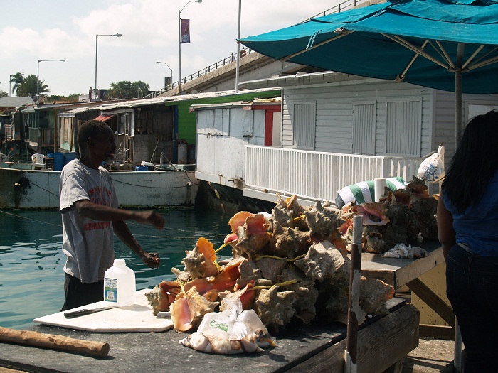 Everywhere you go in the Bahamas there are conch for sale. It is quite amazing that there are any conch left to catch. If you look closely, you can see a piece of rope going from one shell to the other. This way, the fisherman can toss the conch into the water to be stored till they head to market. This way the conch can’t get away.