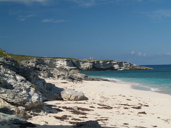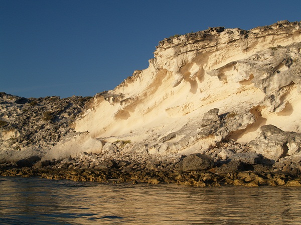 Over the centuries the Bahamas Banks were alternately flooded and exposed as subsequent ice ages tied up large amounts of water in glaciers up in the higher latitudes. As the banks here were exposed to the wind, huge sand dunes were built up. As rain fell, minerals in the sand leached down through the sand and hardened the dunes into sandstone. As the glaciers receded and the sea levels rose, the ocean carved the stone into fanciful shapes. Here’s a good examplesof the evolving landscape. It’s pretty dramatic.