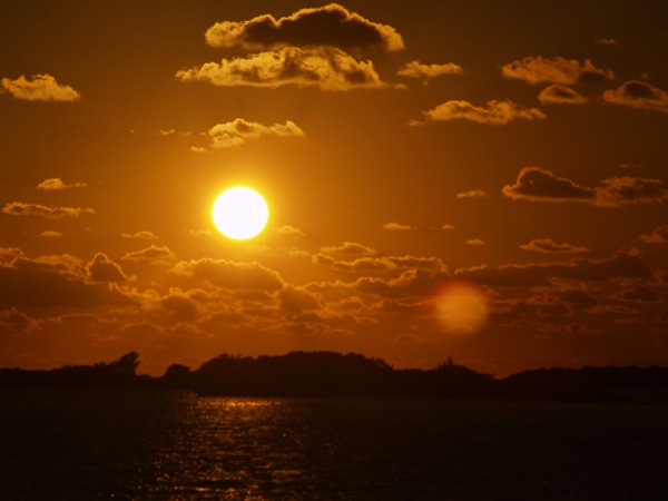This guy was very happy to see me.   Brenda wasn’t so sure she wanted to walk on the beach as the iguanas followed us along as we walked, looking for a handout.   She was very brave and walked anyway.I climbed up to the top of the white cliffs and took a shot of Pandora all alone.  Pretty dramatic.Speaking of dramatic, how about this amazing sunset to cap off the day?  There are plenty of these here in the Bahamas.  We even saw a green flash, again.  Last year we saw only one;  here something like 4 so far. What a perfect end to the day.Oh yea, the shelling is great in the Bahamas.  Yesterday Brenda and I went out near Staniel Cay and had a ball picking up shells.  Here’s our haul from only a few hours of searching.  Tomorrow we will head to Black Point Settlement, a few miles south of here.  We need to do laundry and what is arguably the best laundry in the Bahamas is there.  And, the lady who runs it also cuts hair and I really need a haircut, believe me as it’s been several months.  We also need food as the larder is getting a bit bare.