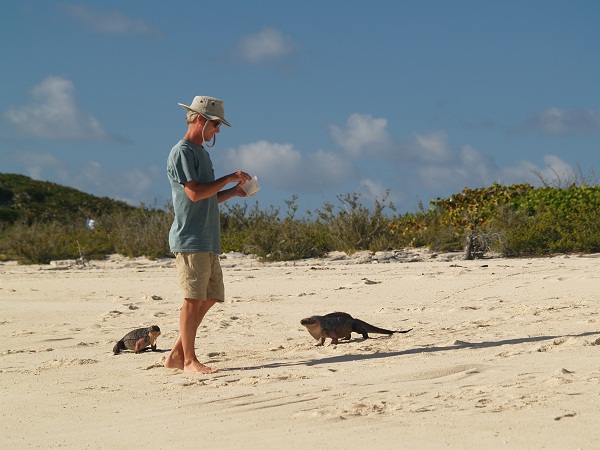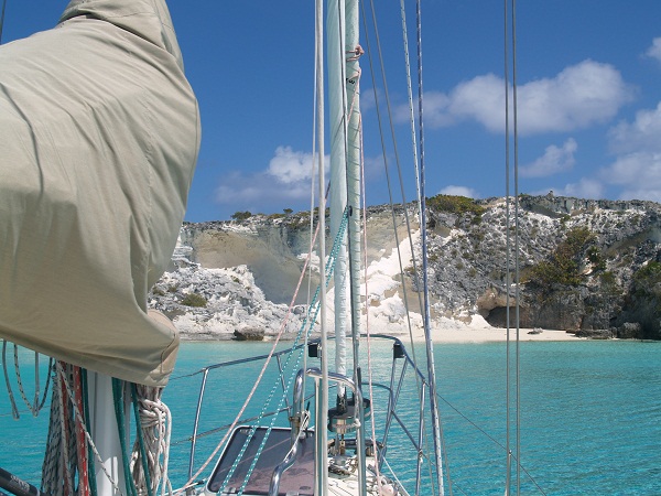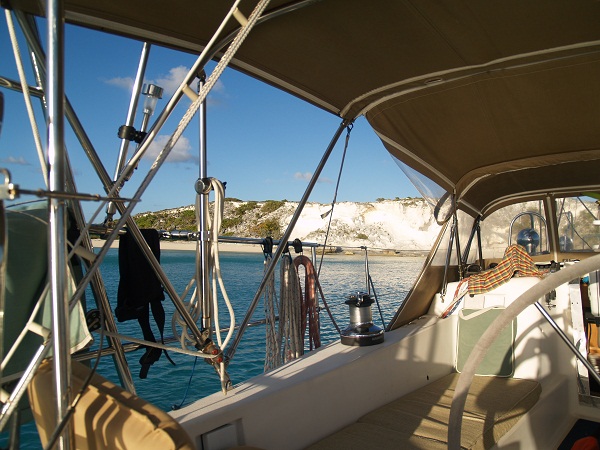 There is a beautiful beach that was totally empty, with the exception of an enthusiastic community of iguanas.  As an added bonus, there were white limestone cliffs to block the strong wind from the east.  Quite an amazing view from the cockpit.   It’s hard to beat this sort of view.  As an added bonus, this view of “white” comes with a temperature in the 80s instead of 8 degrees like home.   Good to know.In the afternoon I want ashore and stood at the bottom of the white cliffs.  The temperature had to be over 100 degrees as the sun was just baking into the white cliffs and they were acting like a solar oven.  It was amazing how different the temperature was just a few hundred feet away near the water where it was more like 80.  Talk about “microclimates”.I understand that this particular species of iguana is among the most endangered of any lizard in the world.  While they used to be abundant on many islands here, they now number in the hundreds or perhaps dozens.   That’s it.  Not very widespread.   I have been told that the population is doing pretty well and growing, I understand.