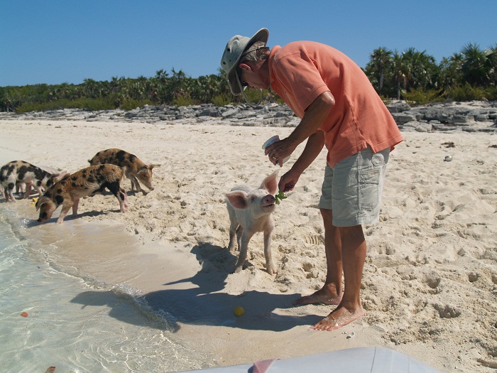 Yes, pictures are good. While we were in Staniel Cay waiting for our packages to be flown in, we took some time to visit the pigs on nearby Big Majors Spot. Yes, I have already posted about the local swine but wanted to show yet another picture of some of the little piglets.
