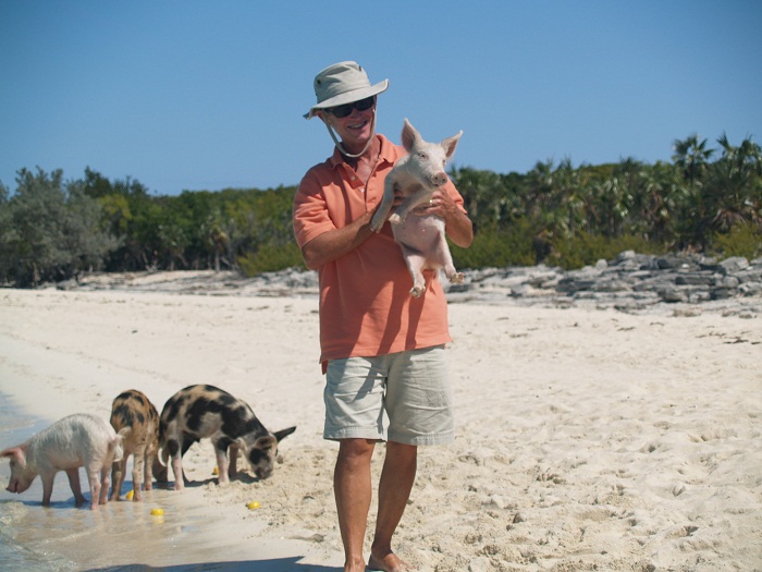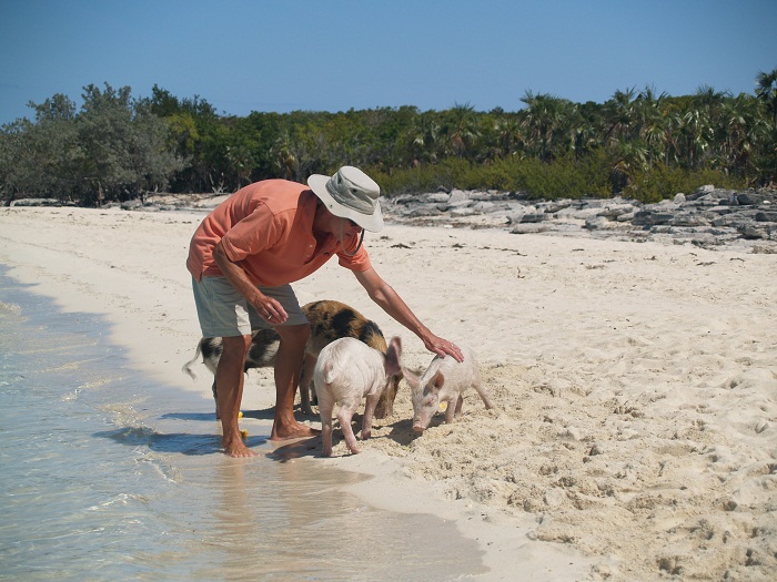 They were so cute, if a bit salty and sandy. And, how I know about this is because I couldn’t resist picking up the littlest piglet. But, first I had to choose one. How about the littlest? Here piggy, piggy… Just a little closer…
