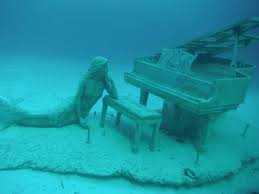 As a particular point of interest, David Copperfield had a full size grand piano with a reclining mermaid commissioned out of stainless steel and then sunk it off of his island. I was able to dive on it with some new friends we met who were from France And Belgium. They took me in their dink, complete with a 40hp motor, off to visit the piano. The currents were fierce and swimming down to the piano was a bit challenging. I took some videos but can’t post them. Here’s a photo I pulled off of the Web.