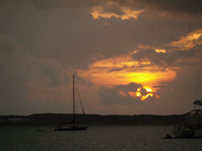 One of the things that I really enjoy visiting the Bahamas is watching the dramatic clouds. Sometimes they are combined along with big winds as well but not always. Can you say “squall”? On our last night in Georgetown a front came through the area bringing with it quite a show. We had drenching rain, if only for about 15-30 minutes. It was nice to get Pandora rinsed off. However that didn’t last long as our run over to LI the next day got the boat pretty salty.