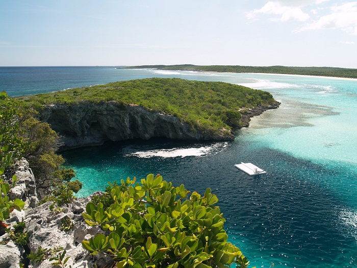 Blue holes are formed when seawater leaches away the bedrock and creates underwater caves that lead to the ocean. These “holes” are all over the Bahamas with some being only a few feet across and other 100s of feet across. Deans has the distinction of being the deepest in the world at 660 feet deep. Question: If it’s 660′ deep is that at low or high tide? Perhaps they are averaging. I won’t be checking that fact myself anytime soon.