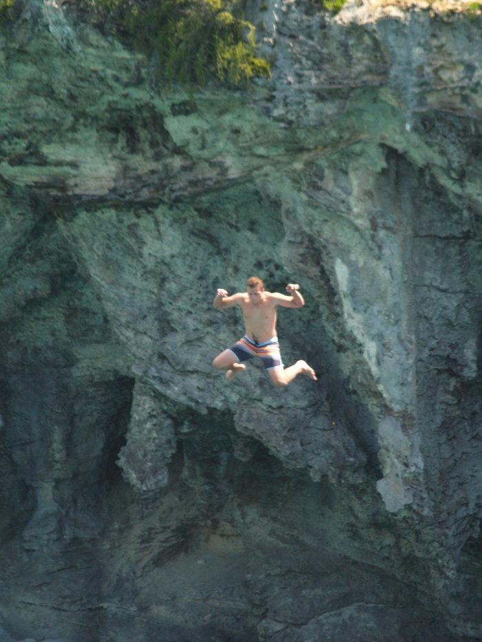 Another popular pastime here is to jump off of one of the surrounding cliffs. Not sure I’d have the guts to do this either. Here’s a guy that did. I took some solace in seeing him stand there for quite a while till he took the plunge.