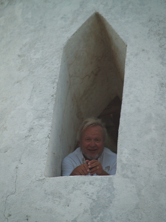 Oh well, Dick climbed up the other tower and mugged for the camera. Reminded me of one of the characters from the old TV show Laugh In from the 60s, or was it the 70s? Hmm…