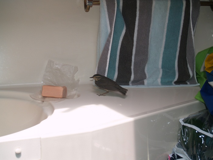 I suppose that I should close with a photo of the little guy that joined us a few days ago and camped out in the head. Alas, sniffle sniffle, he didn’t make it and was buried at sea. Perhaps if he’d sampled some of my cooking it might have turned out differently. I guess I’ll never know…