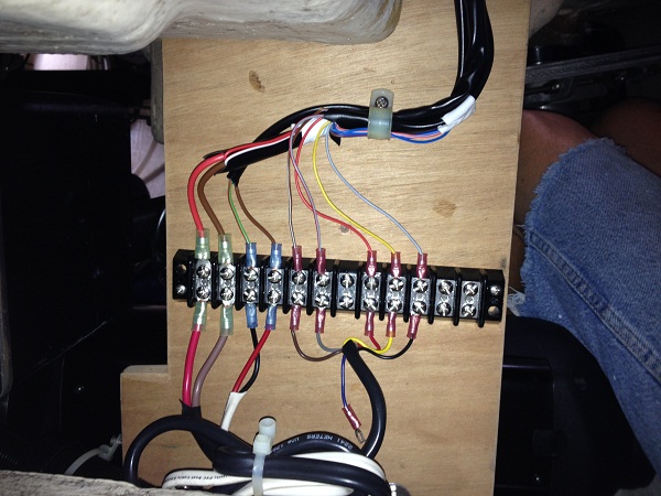However, getting the unit operational didn’t work out as well as I had hoped. The mistake I made was to try and use the old wire harness from the old “mort” heater and just match up the individual wires on a junction board instead of snaking all the new wires through the bilge. My brilliant idea was to avoid ripping up the floor a project that I have done one too many times and didn’t want to repeat. How simple, I surmised, to just label the wires, color for color, and note that the “new” red with white stripe wire in the new harness matched with the “old” brown with green stripe wire. Simple, right? NOT!!!