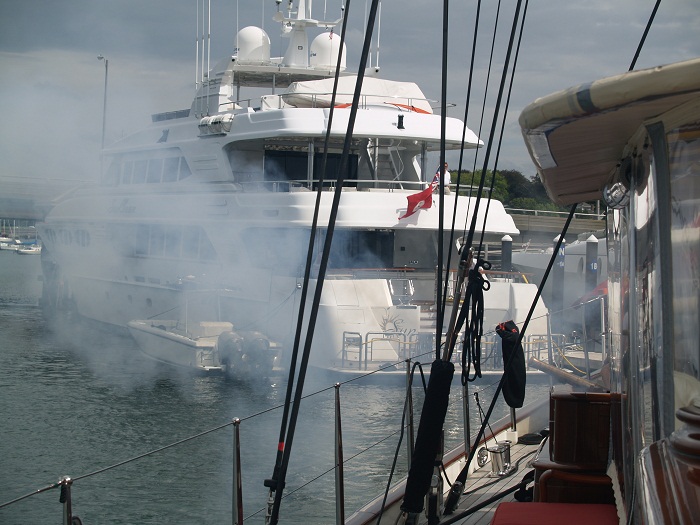 Anyway, as I was gathering up dad’s shooting gear which I will use at today’s outing, I thought that it would be fitting to write about another noisy pastime, firing the cannons aboard the Yacht Marie. If you have not read any of my posts about Marie, the 180′ superyacht that Brenda and I sailed on a few weeks ago, I should mention that the owner Ed, LOVES antique weapons. Aboard Marie there are a number of cannons on display as well as two mounted on the stern quarters that are fired REGULARLY.