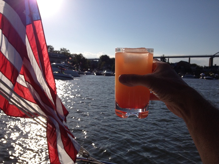 Speaking of “sobriety”, I made up a few delicious rum punches for Pandora’s crew that we enjoyed very much.  I even got a shot of the sun setting on my own punch.  Don’t the colors work well together?  I had to take the shot quickly before my ice melted.  Such problems I endured. I guess that this qualifies as a “rum selfie” if there is such a thing.After a good night sleep, and some of Pandora’s famous fresh biscuits, we made our way down to Annapolis.  Mission accomplished.  Pandora’s ready for the gam.  Then, on to Georgia where she will be hauled for a rest while Brenda and I do some traveling and enjoy the holidays with family.  We’ll rejoin her in GA in early January.