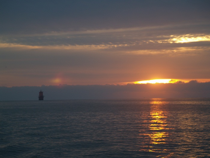 It’s Monday morning and the sun is just peaking up over the eastern horizon as we make our way into Hampton Rhodes after an overnight from the Rhode River near Annapolis. The sky is overcast but quite dramatic. I tried to time the shot when the lighthouse was blinking. No luck…