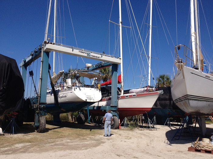 I asked one of the guys in the yard when most of the owners would be returning to leave St Mary’s with their boats. His answer: November 1st, as that’s when most insurance companies allow boats into Florida waters. November 1st is the official end of the hurricane season. Interestingly, St Mary’s River marks the border between Georgia and Florida. From an insurance perspective, the GA side of the ST Mary’s River is OK, while two hundred yards away, across the river, it’s a big NO-NO, as it’s Florida. Well, I guess that you have to draw a line somewhere and the FL-GA border is where everyone draws that line.