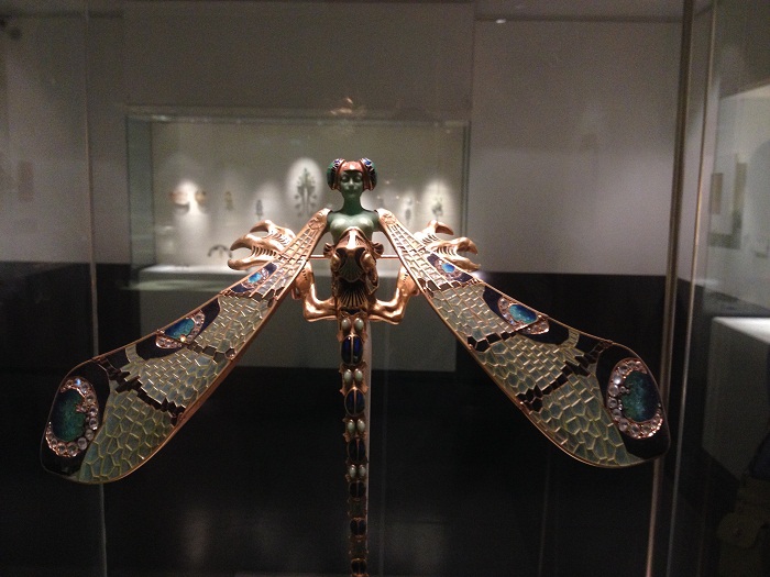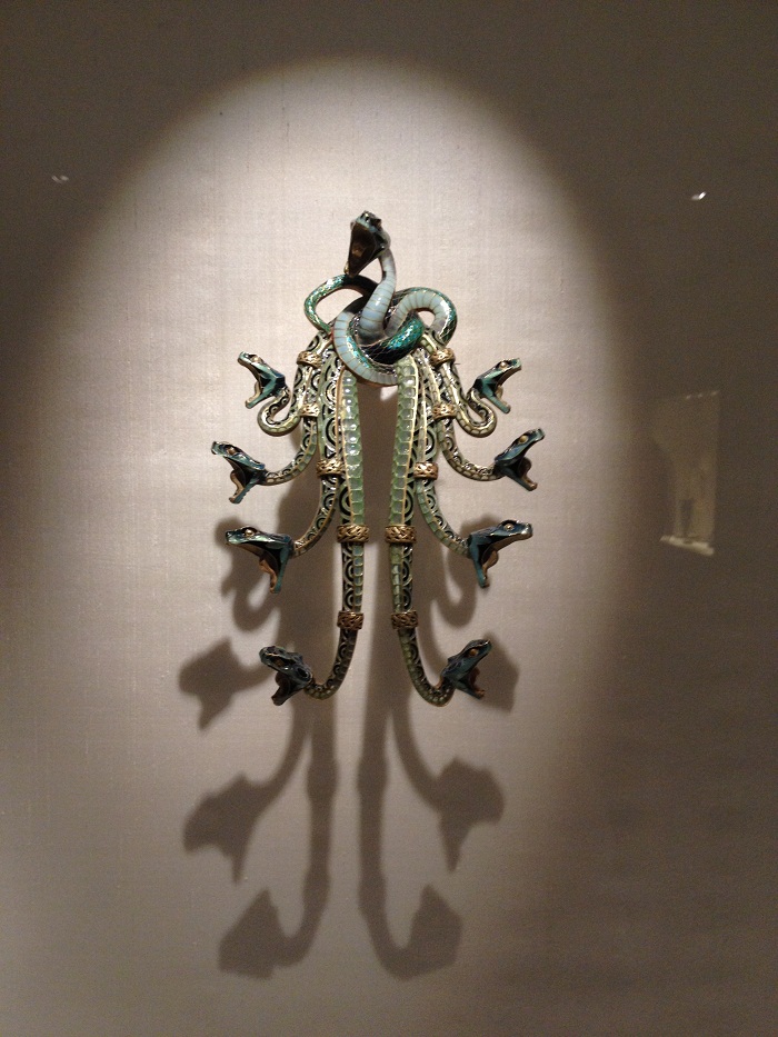 I was particularly taken by some of the art deco jewelry, mostly hair pieces and broaches. This piece, was amazing. At about 10″ across, a women wearing this would certainly be making a statement. I guess she’d have to have really big hair to pull this one off.