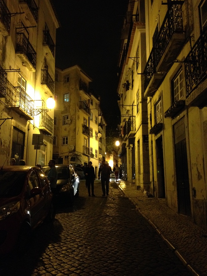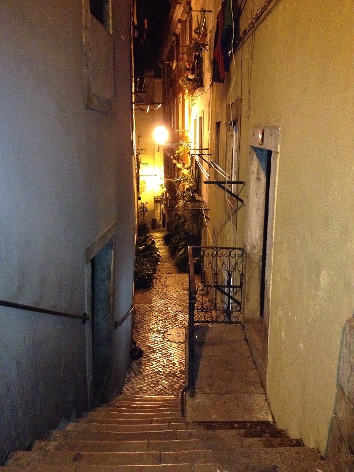 I mentioned in past posts that the streets, more like narrow alleys actually, that make up this area are a tangle of intersecting paths winding around in no particular pattern. It’s obvious that cars were not in the picture when this area of Lisbon was “planned” hundreds of years ago by a bunch of guys riding donkeys.