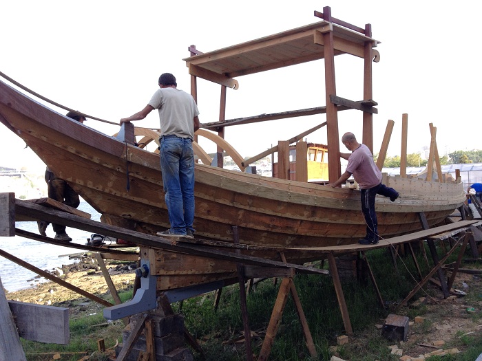 The style is unique to the region with a high bow and stern, designed to manage the rapids in the river north of the city.   The current really rips when the tide is ebbing.  The force of the current is impressive.