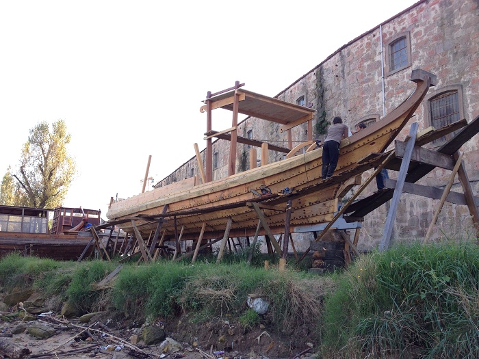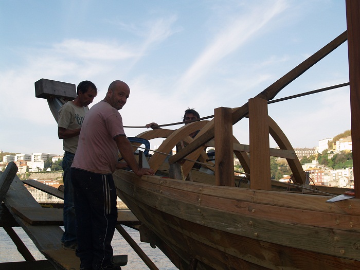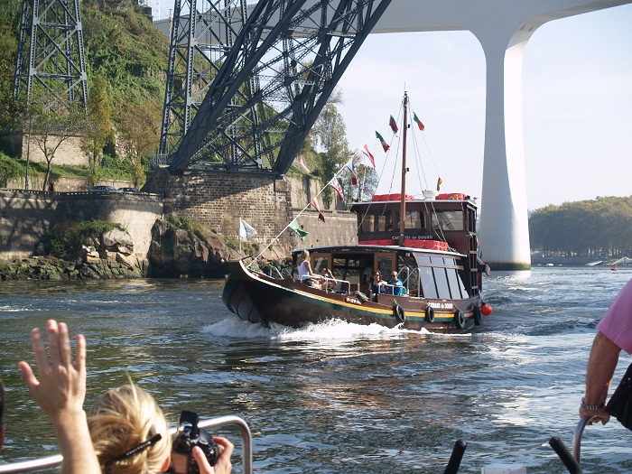Our hotel is a short distance from the river just off of a really impressive city square.  I guess that you could call this the “modern” section of the city.  As you go down to the river, you are in the really old section where the port wine business are located, even to this day. The sides of the river are very steep and there are a number of really impressive bridges.  In particular, this one was designed by Eiffel of Eiffel Tower fame.  It’s beautiful and has a pedestrian walkway on it’s top. The boat that we boarded for the river tour looked like this one.  It was constructed locally out of wood.  I like the design and was impressed with the speed it could make against the current that was ebbing at close to 5kts. Unlike so many tourist boats you see in historic areas that only barely resemble their traditional counterparts, these are very nice and there is a high attention to detail in their construction.   The interior was quite well appointed.  Brenda and I were the only ones on board that seemed to appreciate the need to stay out of the sun.  I guess it’s from our years aboard, always trying to avoid getting a “good tan”. We went under a number of great bridges but the Eiffel was clearly the most impressive. There is a boatyard perched on the bank of the river, right in the heart of the city where they are building and repairing traditional boats.   There were several traditional boats under construction and a big tour boat being made as well.