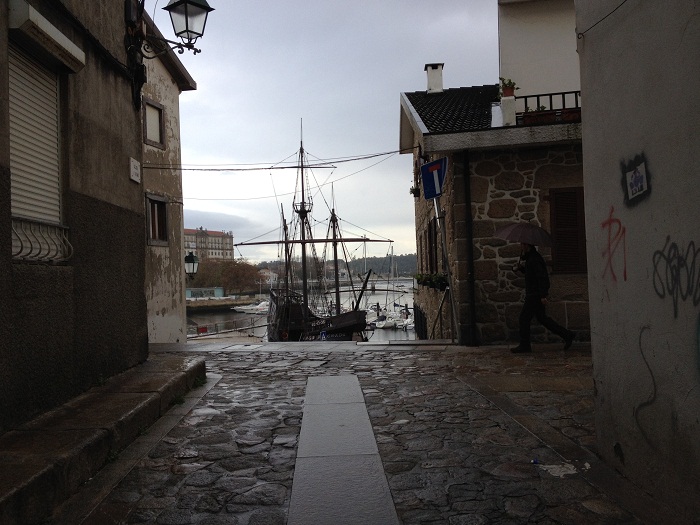 As Vila do Conde is situated at the mouth of a river, there’s a small harbor and in the past it was a thriving ship building town. There’s a charming little maritime museum complete with it’s own replica of a ship from the 15th century, the Age of Discovery. These ships, only about 90′ long, sailed all over the world and as far away as China and Australia. They must have rolled terribly all the while going really, really slowly. The bow doesn’t have quite as narrow an entry as Pandora’s.