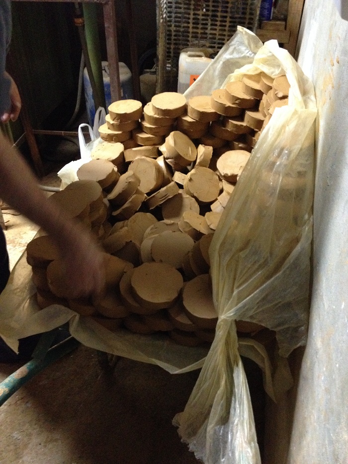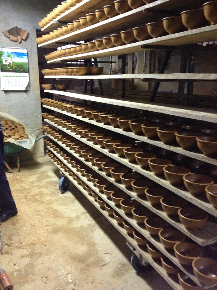 There were hundreds of bowls, fresh from the press, on shelves drying out prior to finishing.